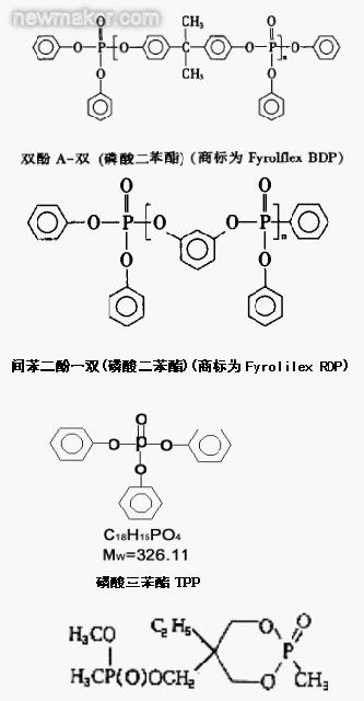 在阻燃机理、分子结构相近的情况下,磷含量越高的阻燃剂阻燃效果越好,实验也证实了这一点。各种阻燃剂磷含量大小为: