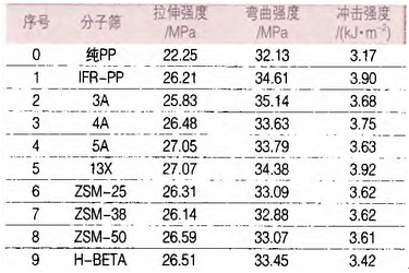 改变阻燃剂中分子筛的种类,考察添加不同分子筛对材料力学性能的影响,结果如表2所示。