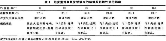 综上所述,微量的铂分别能与氢氧化铝和含硅填料并用,在一定程度上提高了硅橡胶的阻燃性能,提高了硅橡胶高温成炭层的质量、连续性......