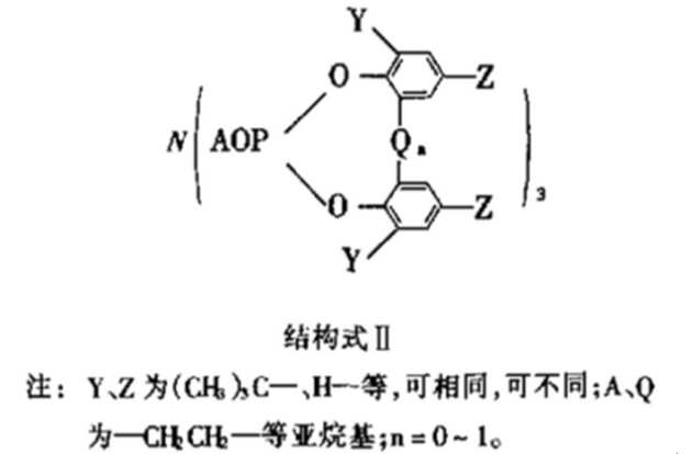 用于热塑性塑料阻燃的一种亚磷酸酯类阻燃剂(见结构式Ⅱ),具有很高的分子量,将其用于阻燃丙烯酸乙酯和聚乙烯的共聚物中,用3mm厚的试样做实验,氧指数为27,拉伸强度达10MPa,并且有很好的防水性。