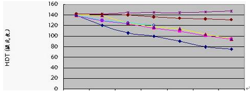 ⑶采用分子量大、分子刚性强的磷酸酯阻燃剂可以有效降低阻燃剂对PPO的增塑作用,减少阻燃剂对PPO/HIPS合金热变形温度的影响。