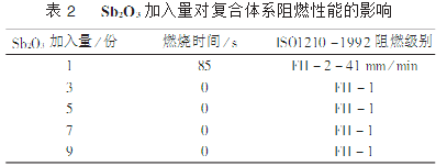 Sb2O3 加入量对复合体系阻燃性能的影响见表2 。