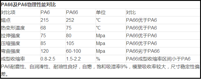PA66与PA6物理性能对比