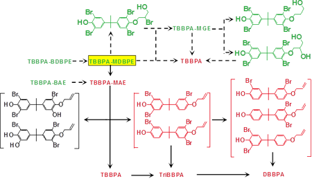 中国科学院生态环境研究中心环境化学与生态毒理学国家重点实验室江桂斌研究组自2010年以来针对四溴双酚A/S类溴代阻燃剂进行了深入的研究。研究组相继开发了基于电喷雾萃取电离技术、固相微萃取技术和高分辨质谱技术的新型分析方法,用于环境中四溴双酚A/S衍生物和副产物的分析,提高了衍生物检测的灵敏度和选择性,实现了复杂环境介质中未知溴代污染物的非靶向识别,为此类污染物的环境行为和环境归趋研究提供了必需的技术手段。相关研究成果发表了系列研究论文并发表了综述文章。